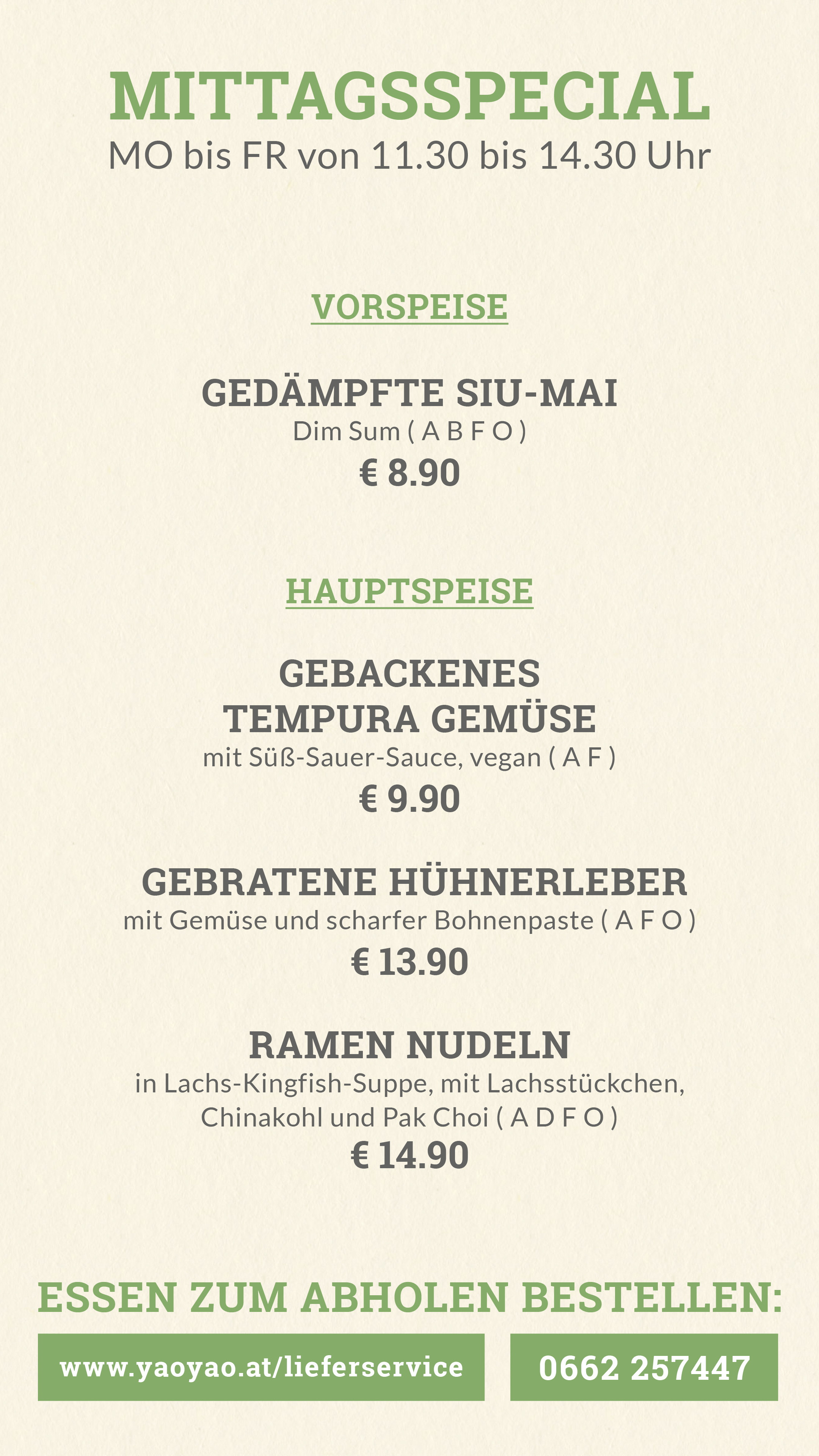 Diese Zustimmung kann der Kunde mittels Brief an YAOYAO gmbh, Europastraße 1, 5020 Salzburg oder per E-Mail an office@yaoyao.at widerrufen.