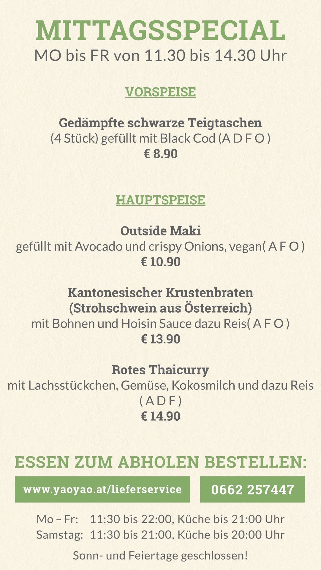 Diese Zustimmung kann der Kunde mittels Brief an YAOYAO gmbh, Europastraße 1, 5020 Salzburg oder per E-Mail an office@yaoyao.at widerrufen.